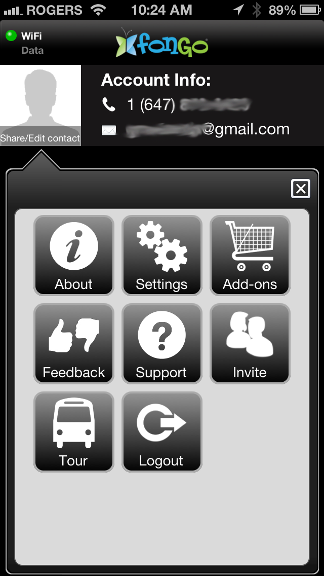 In Canada, Fongo is the only app that I have found that will give you your own phone number. Fongo started as a joint collaboration with Dell and up until January of this year was known as Dell Voice Powered By Fongo. To get started all you do is download the app, set up your account and Fongo will assign you your own number based on your location. My number is a 647 area code number because I am located in Toronto. Fongo will import all your contacts (if you let it), allow you to both make and receive phone calls anywhere in Canada and send instant messages to other Fongo users free of charge. If you need SMS messaging to any phone, you can buy a monthly package for $1.99. The app is available for iPhone or Android but they also have a desktop version of the software. Here are some screenshots of the app: